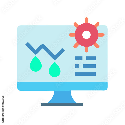 Monitor display shows chart with virus icon on it