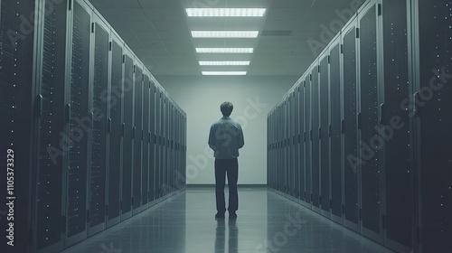Monitoring the Network:A Data Center Administrator.Concept of Cybersecurity,data security,IT infrastructure,network engineering, tech support,data centers,cloud computing providers.