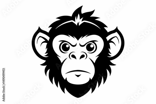 monkey head silhouette line art vector illustration with a white background