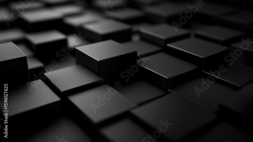 Monochromatic mosaic pattern of black squares creates an abstract background
