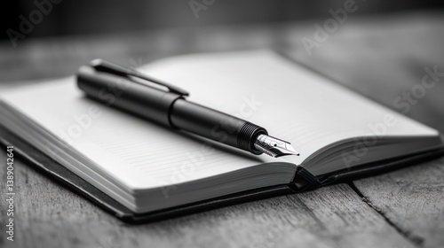 Monochromatic Still Life: Fountain Pen and Open Notebook