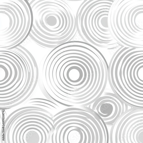 Monochrome circular rings forming a hypnotic seamless pattern. Light gray concentric lines on white background. Suitable for minimalist design, decor, or product packaging