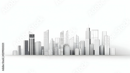 Monochrome City Skyline Silhouette Against White Background in Geometric Modern Design