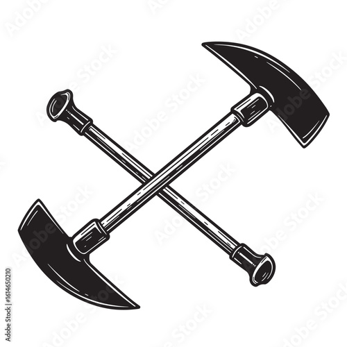 Monochrome crossed fire axes symbol illustration for firefighting emergency services design