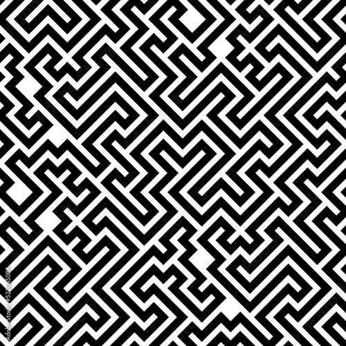 Monochrome diagonal maze seamless pattern