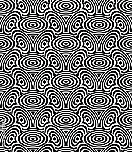 Monochrome illusory abstract geometric seamless pattern with 3d