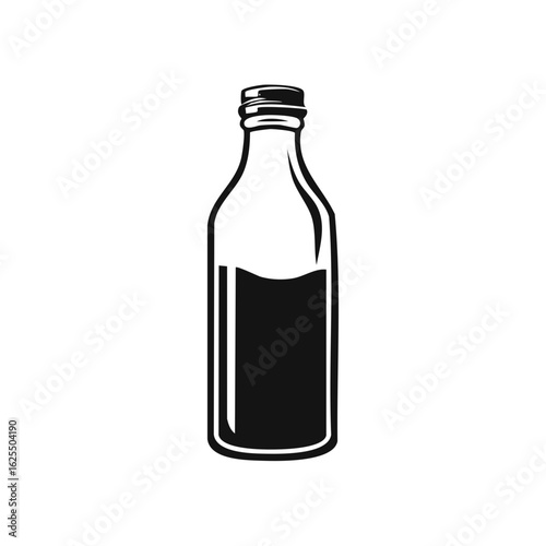 Monochrome Illustration of a Filled Bottle with a Secure Cap Displayed Centrally