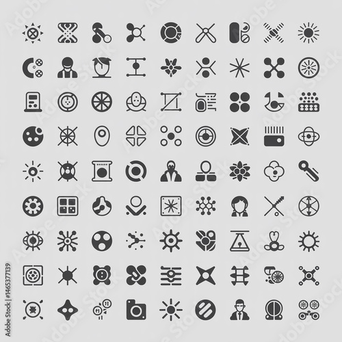 Monochrome Mastery A Grid of 200 Minimalist Icons for Science and Education