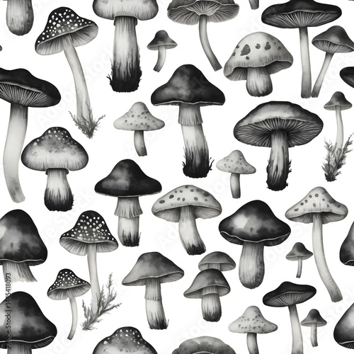 Monochrome Mushroom Seamless Pattern