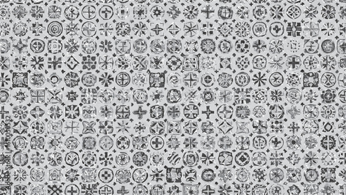 Monochrome textured pattern with a variety of historical and decorative cross symbols.