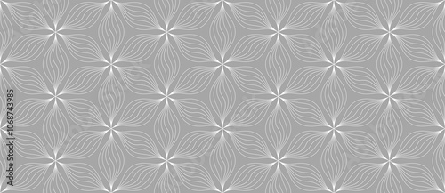 Monochrome vector geometric seamless pattern with floral silhouette, curved lines. Repetitive texture.