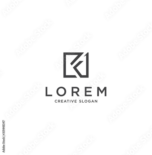 Monogram Letter F K Logo With Thin Black Monogram Outline Contour. Modern Trendy Letter F K Design Vector Illustration.