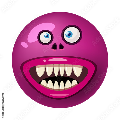 Monster face cartoon round icon head Halloween character. Illustration, sticker, emblem funny cute mask, vector