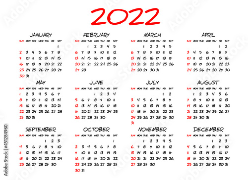 Monthly calendar template for 2022 year, simple calendar design, Planner, Week Starts on Sunday, Wall calendar 2022 design, Desk calendar 2022, Business template vector illustration