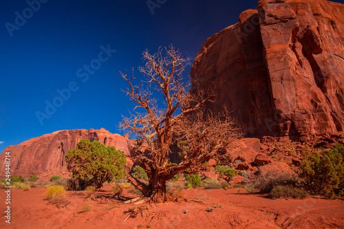 Monument Valley. Navajo Tribal Park. Red rocks and mountains. Located on the Arizona–Utah border. USA