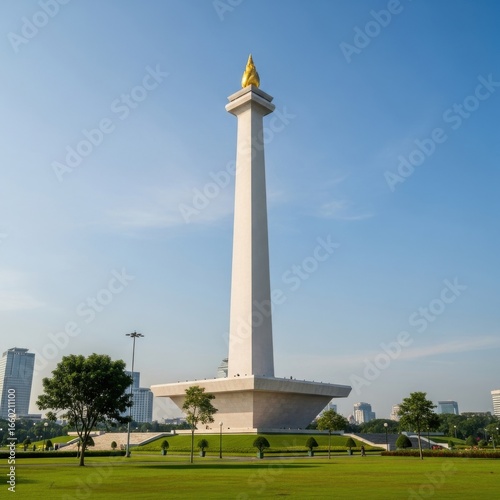 Monumental splendor of National Monument in Jakarta, soaring high under a bright sky