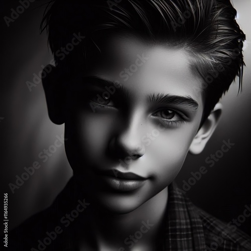 Moody dramatic portrait of a boy with a confident outgoing perso