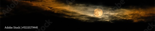 Moody Moonrise with Full Moon Partially Veiled by Dramatic Clouds in Night Sky - Atmospheric Digital Background for Mystical and Dreamlike Visual Content