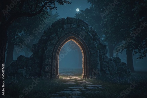 Moonlit Forest Stone Arch Gateway