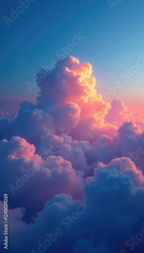 Morning clouds in a deep blue sky with red undertones visible, subtle, delicate