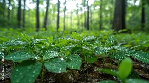 Morning Dew Kissed Seedlings Thrive in the Lush Forest Undergrowth