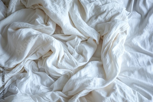 Morning Mess: Crumpled White Blanket and Bedding in Bedroom