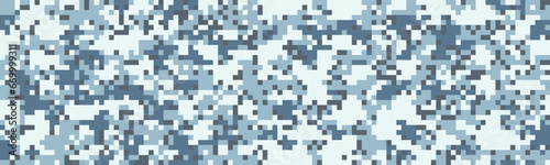 Morpat digicam seamless pixel winter white and blue army camo pattern. Acupat mosaic camouflage with squares texture. Vector background
