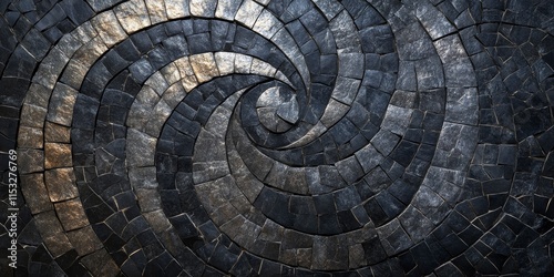 Mosaic design featuring an abstract dark texture combines intricate patterns and deep shades to create a captivating visual experience. The dark texture enhances the mosaics allure.