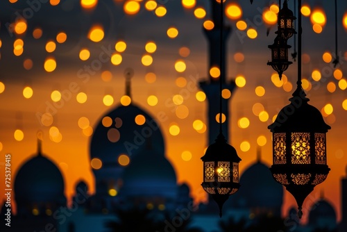 mosque and hanging lanterns