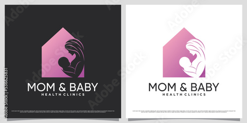 Mother and baby logo design for baby clinic with home icon and creative concept