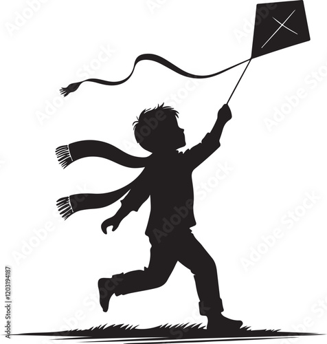 mother and child flying a kite silhouette vector illustration