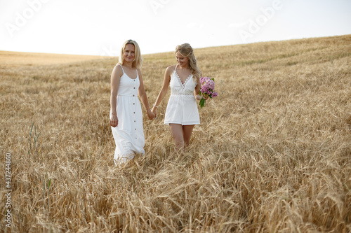 Mother with beautiful daughter in a autumn field
