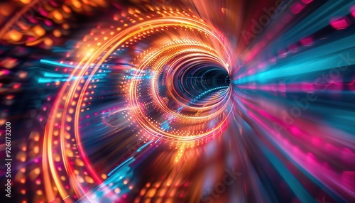 Motion blur, futuristic light trails, vibrant neon, dynamic