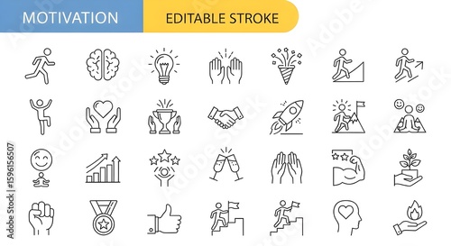 Motivation Editable Stroke Line Icon Set | Vector Symbols for Self Improvement, Goal Setting, and Business Success