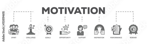 Motivation infographic icon flow process which consists of goal, vision, admire, support, teamwork, mentor, performance, and success icon live stroke and easy to edit .