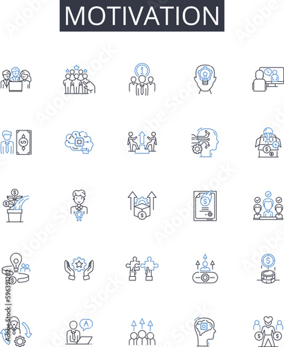 Motivation line icons collection. Enthusiasm, Drive, Inspiration, Ambition, Passion, Zeal, Energy vector and linear illustration. Fire,Dedication,Incentive outline signs set Generative AI