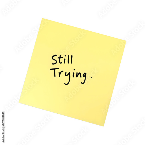 Motivational message on a pastel yellow sticky note Still Trying Simple and uplifting concept against a white background, isolated