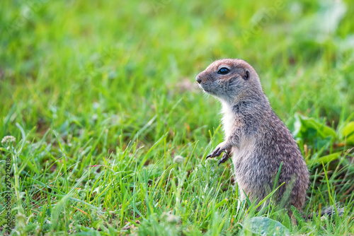 Mountain Caucasian Gopher or Spermophilus musicus in grass in Russia.