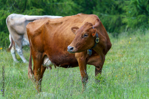 Mountain landscape at summer along the road to Mortirolo pass. Pasture