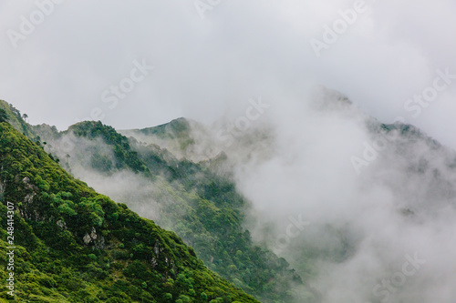 Mountain ridges covered by clouds and fog on top of Cangshan Mountains in Dali, Yunnan, China