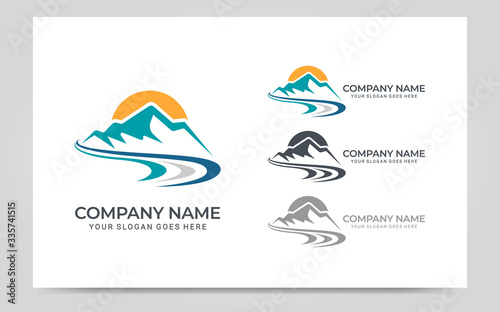 Mountain with dynamic river abstract logo design. Editable logo design. Vector graphic illustration