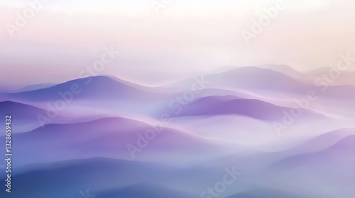 Mountains fading into the fog background. Dreamy, abstract, soft landscape
