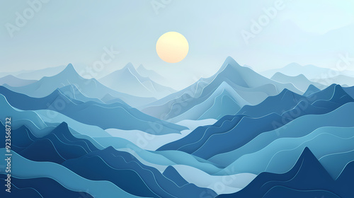 mountains landscape.3d Paper cut abstract minimal nature scene, template background.Vector illustration.