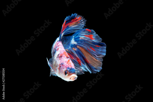 movement of Betta fish, siamese fighting fish, betta splendens isolated on black background