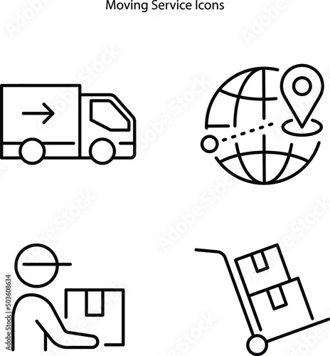 Moving services icons set outline vector. Storehouse box. Cargo move