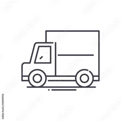 Moving truck icon, linear isolated illustration, thin line vector, web design sign, outline concept symbol with editable stroke on white background.
