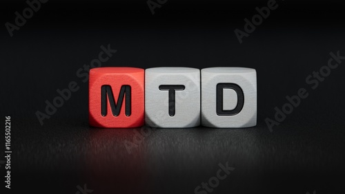 mtd concept on wooden cubes.close up of wooden elements,Business Concept.3D rendering on black background.