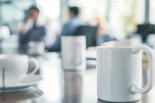 mugs in the office, close-up, businessmen deciding on product supply issues