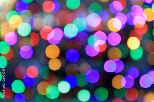 Multi color bokeh, Defocused light for christmas, new year and funny holiday background.