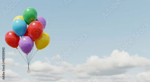 Multi colored balloons, Red balloon, Yellow balloon, Colorful Balloons Floating in a Blue Sky